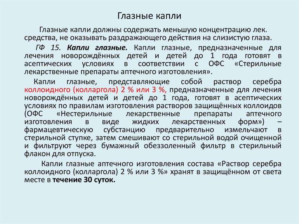 ГФ 15. Капли глазные. Капли глазные, предназначенные для