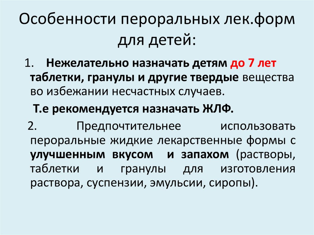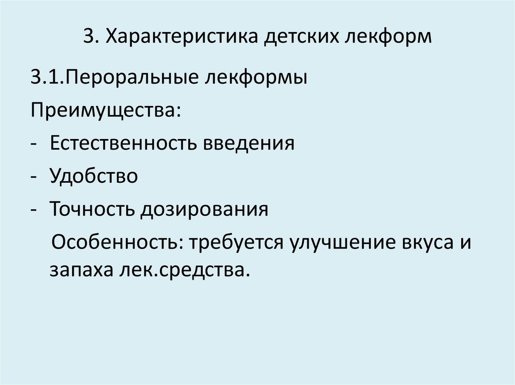 3. Характеристика детских лекформ3.1.Пероральные лекформы