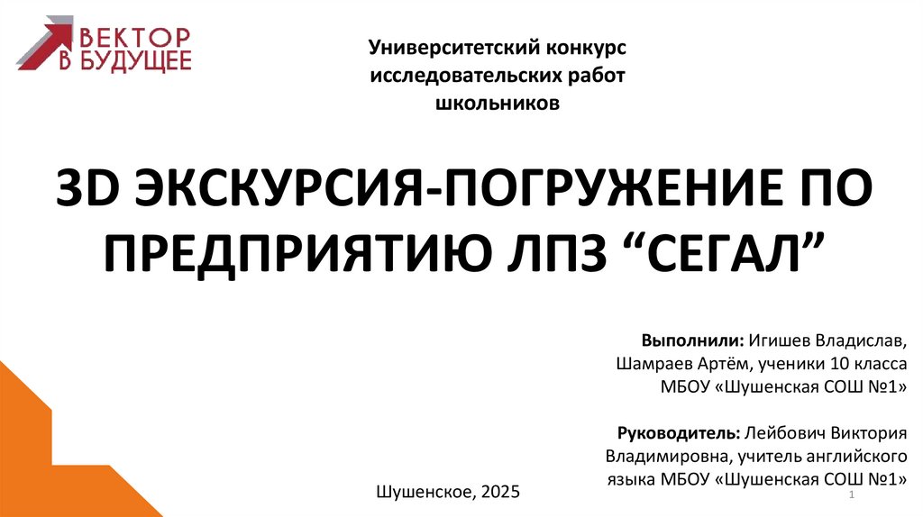 1. 3D ЭКСКУРСИЯ-ПОГРУЖЕНИЕ ПО ПРЕДПРИЯТИЮ ЛПЗ “СЕГАЛ”