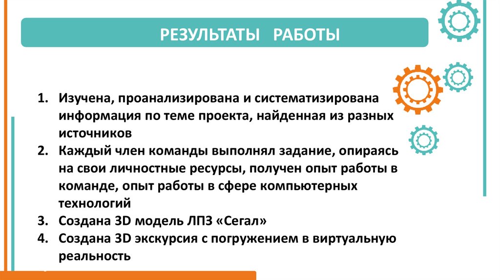 РЕЗУЛЬТАТЫ РАБОТЫ1. Изучена, проанализирована и систематизирована