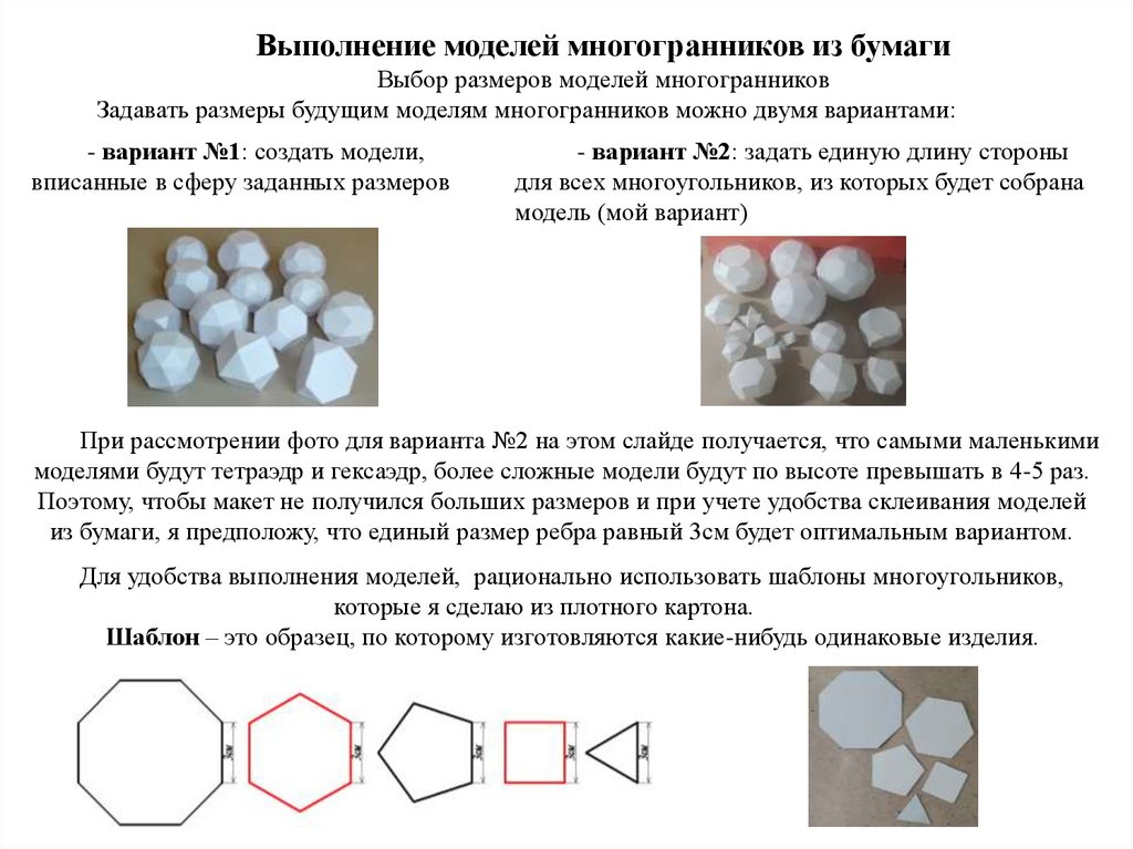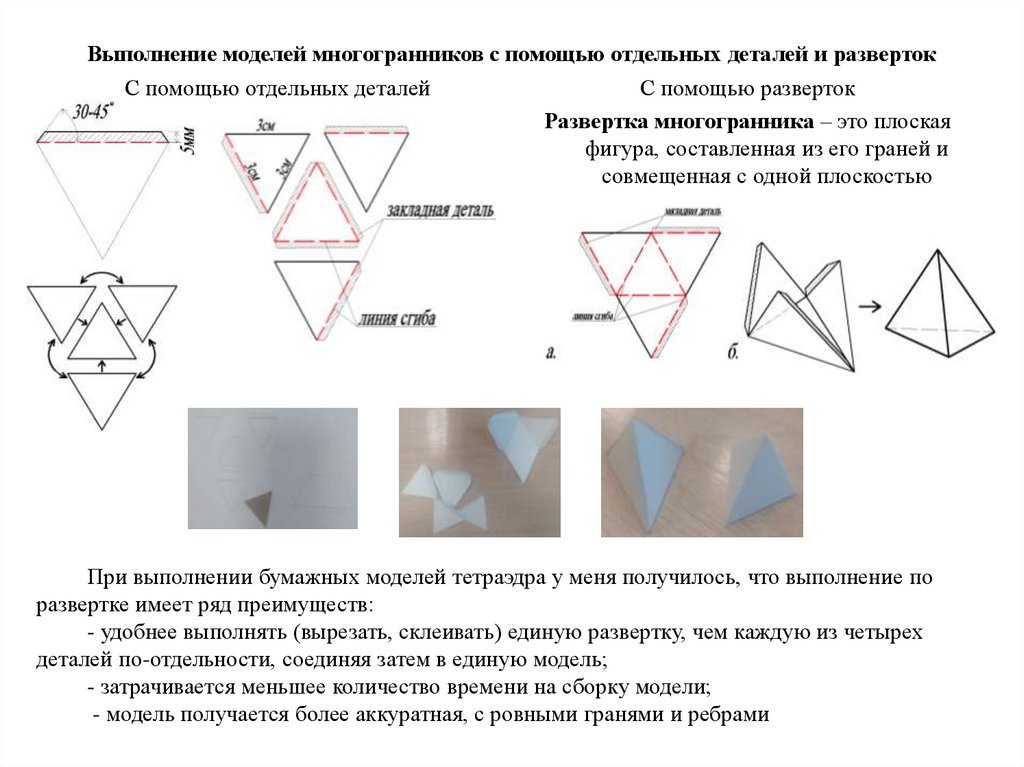 - я доказал, что бумажные модели многогранников лучше выполнять по единым разверткам, чем из