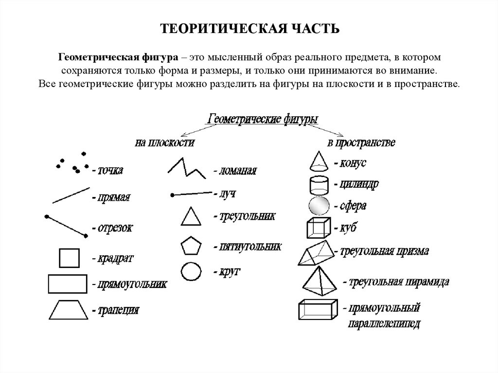 ТЕОРИТИЧЕСКАЯ ЧАСТЬГеометрическая фигура – это мысленный образ реального предмета, в котором
