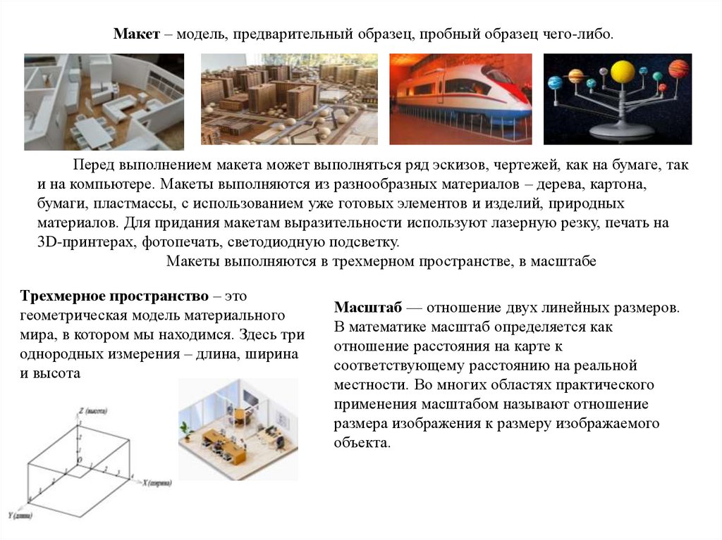 и на компьютере. Макеты выполняются из разнообразных материалов – дерева, картона,