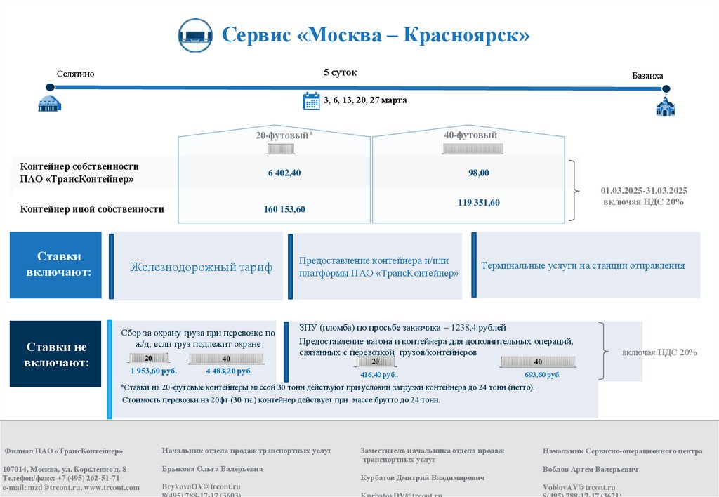 *Ставки на 20-футовые контейнеры массой 30 тонн действуют при условии загрузки контейнера до 24 тонн (нетто).