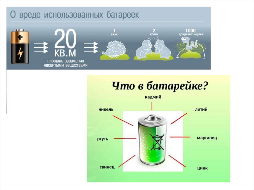 Выводы:• Обычная батарейка является источником загрязнением окружающей