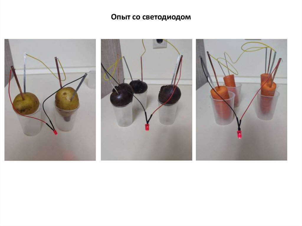 Целью данного исследования является опытным путем выяснить, могутли овощи быть использованы в качестве источника электроэнергии.