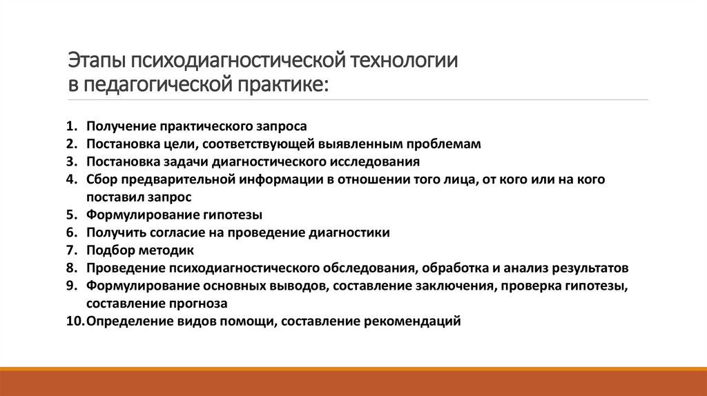 17. Этапы психодиагностической технологии в педагогической практике: