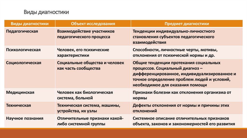 Виды диагностикиОбъект исследования