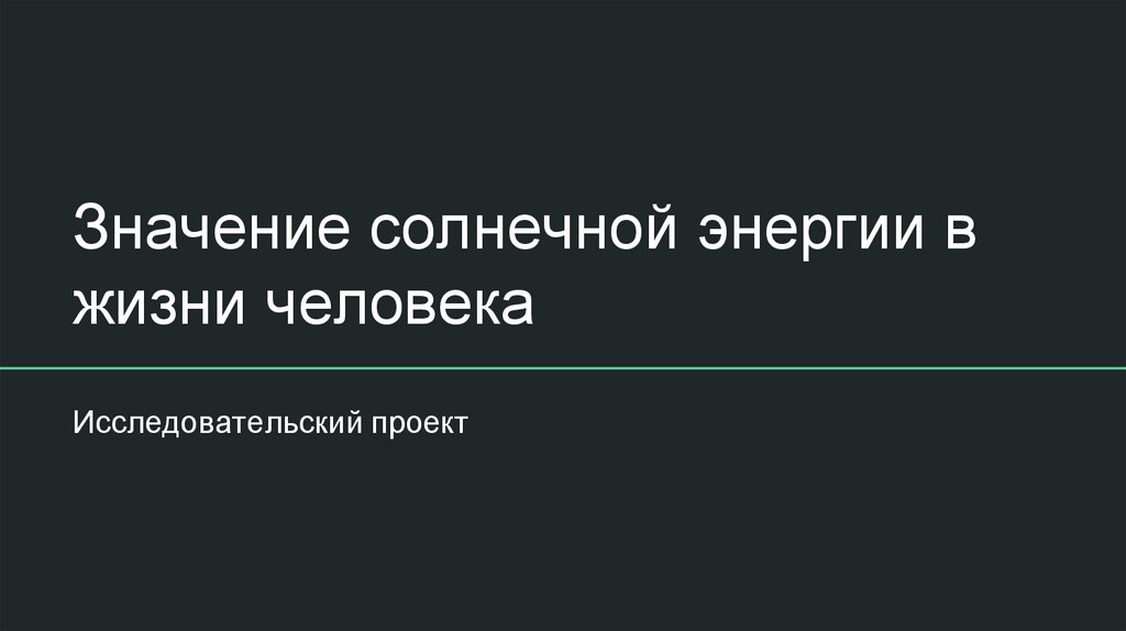 Значение солнечной энергии в жизни человека. Исследовательский проект