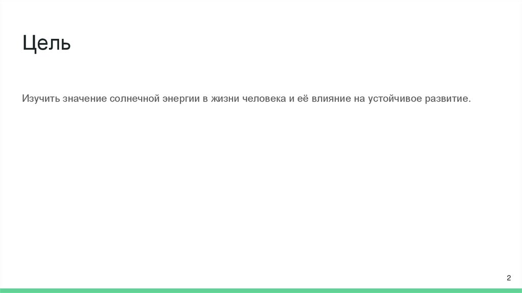 ЦельИзучить значение солнечной энергии в жизни человека и её влияние на устойчивое развитие.