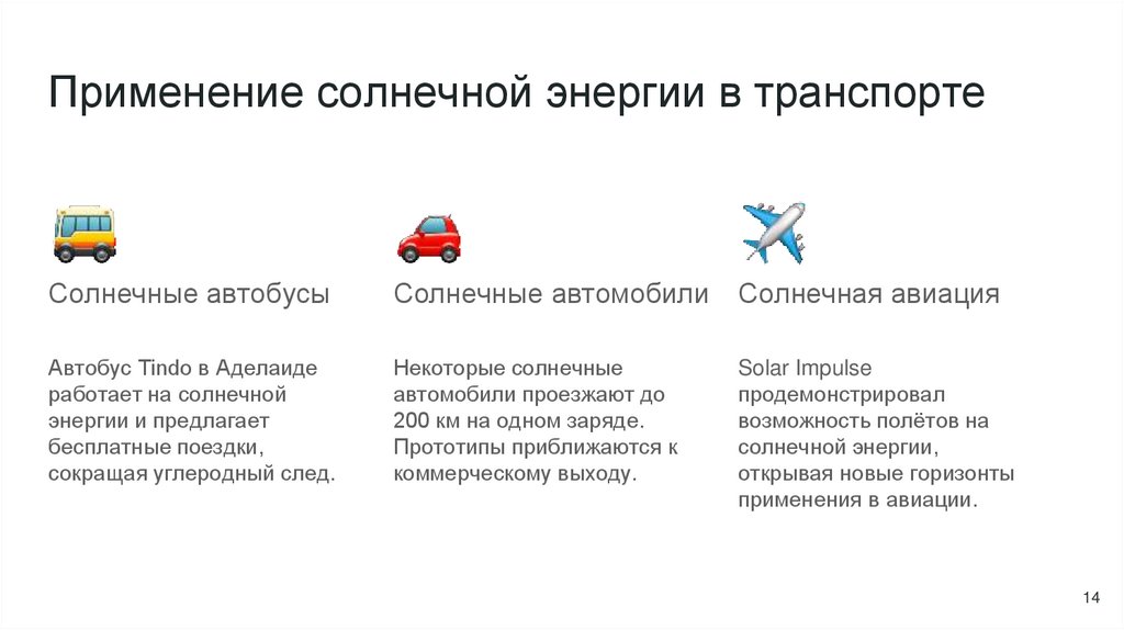 Применение солнечной энергии в транспортеСолнечные автобусы