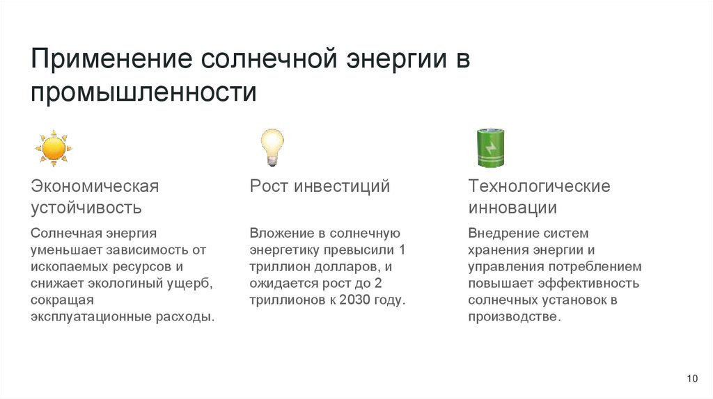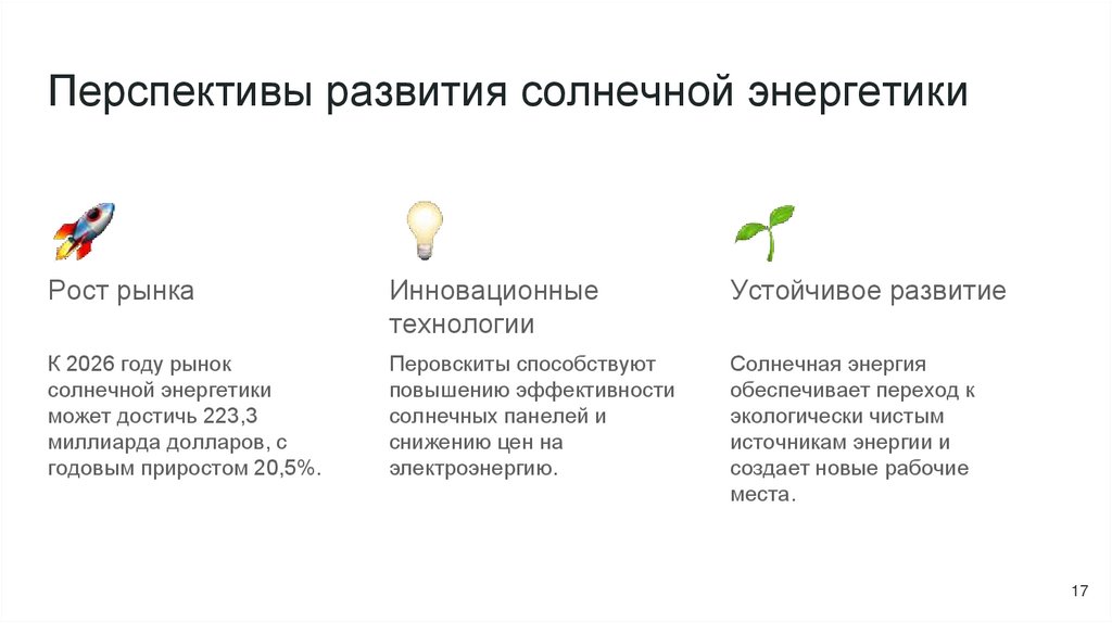 солнечной энергии в различных сферах жизни. 3. Исследовать перспективы развития солнечной