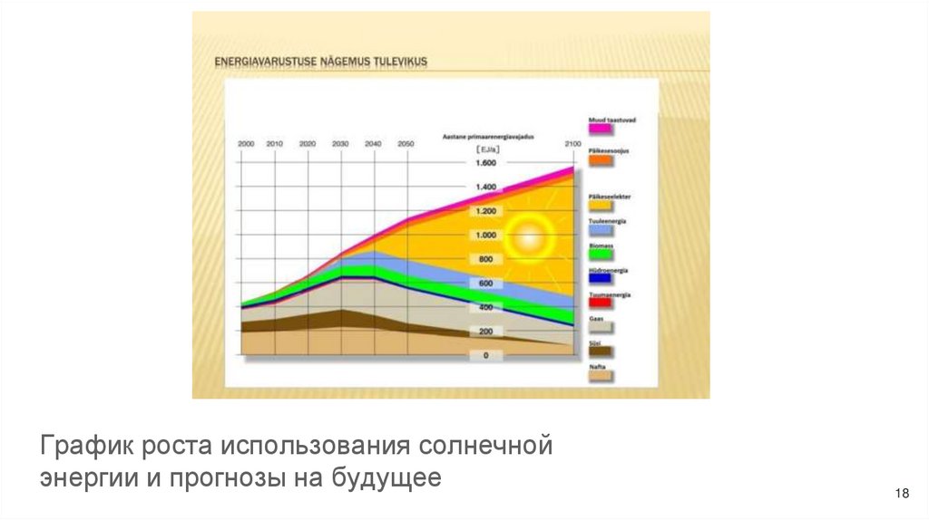 График роста использования солнечнойэнергии и прогнозы на будущее