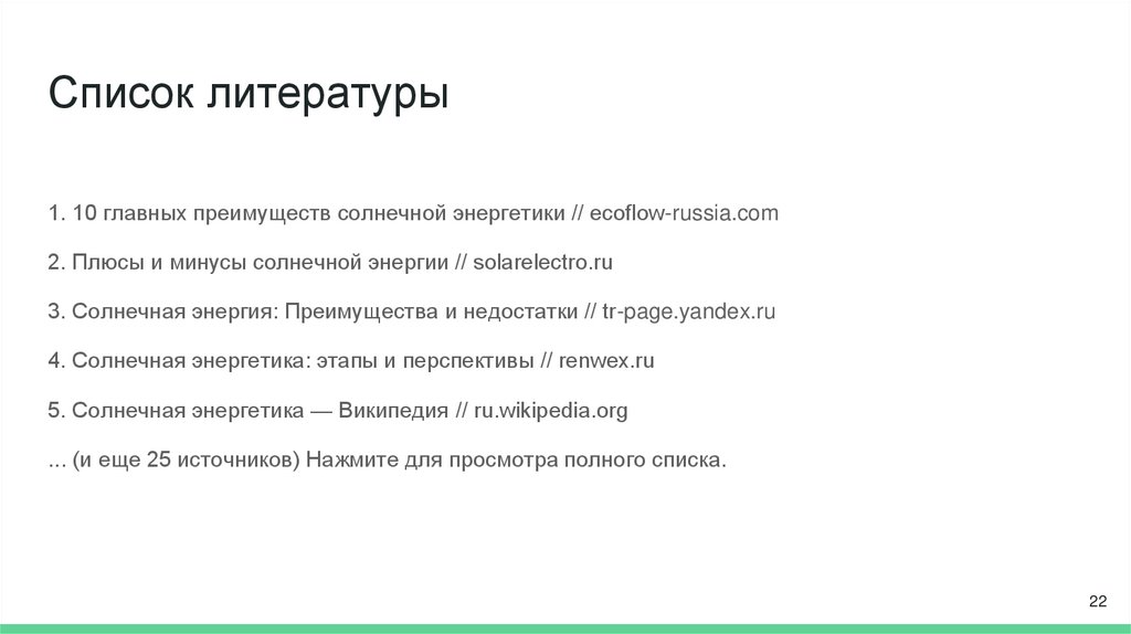 Список литературы1. 10 главных преимуществ солнечной энергетики // ecoflow-russia.com