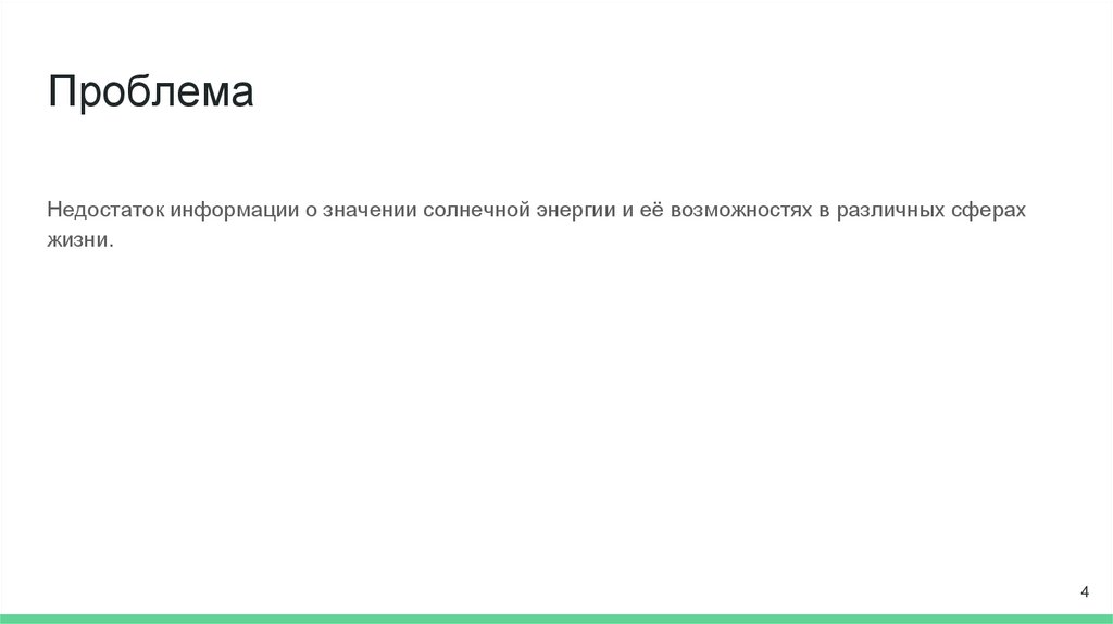 ПроблемаНедостаток информации о значении солнечной энергии и её возможностях в различных сферах