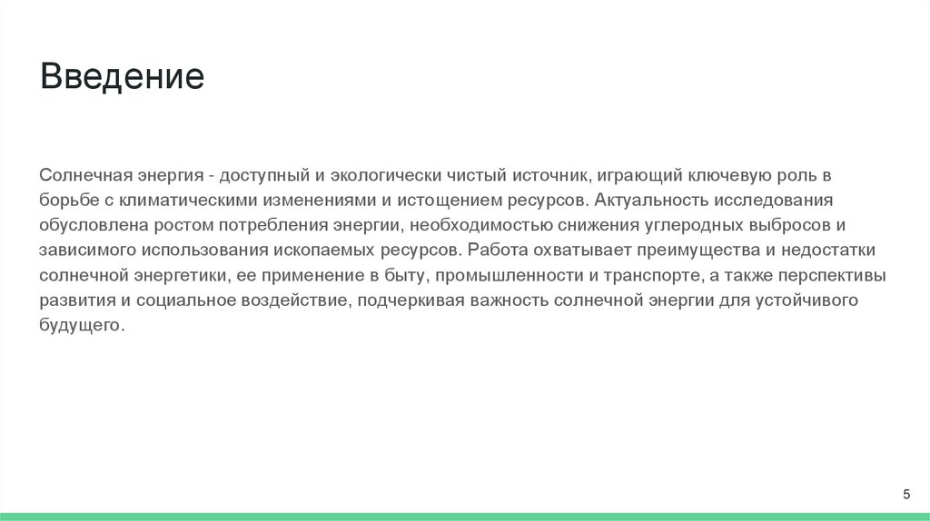 ВведениеСолнечная энергия - доступный и экологически чистый источник, играющий ключевую роль в