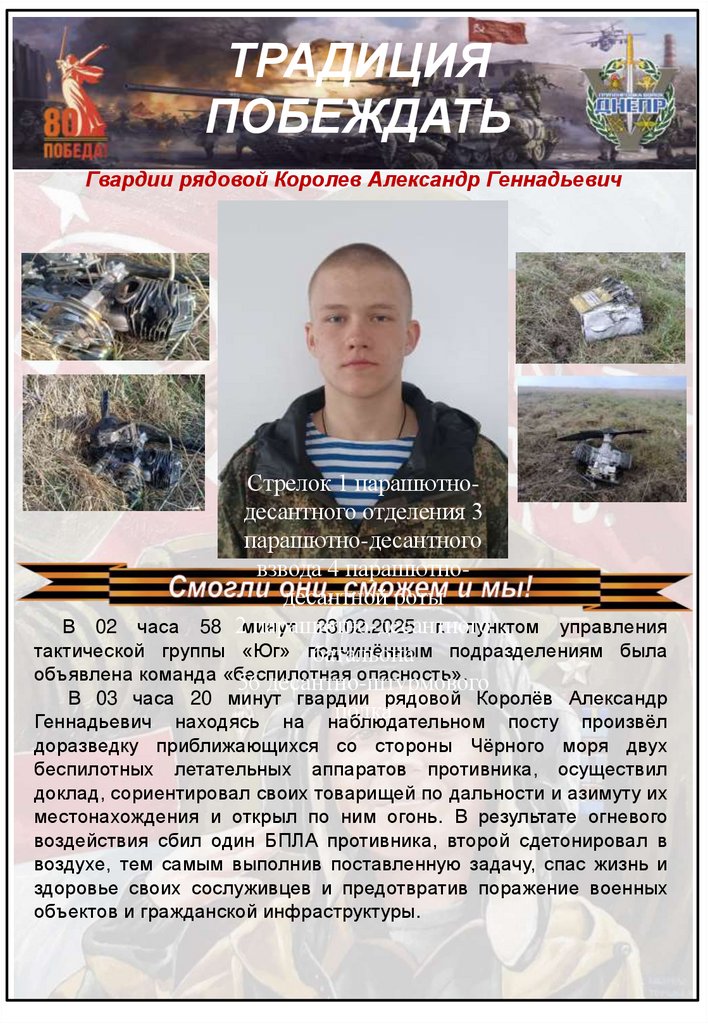 В 03 часа 20 минут гвардии рядовой Королёв Александр