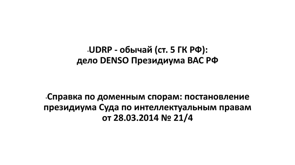 UDRP - обычай (ст. 5 ГК РФ):дело DENSO Президиума ВАС РФ