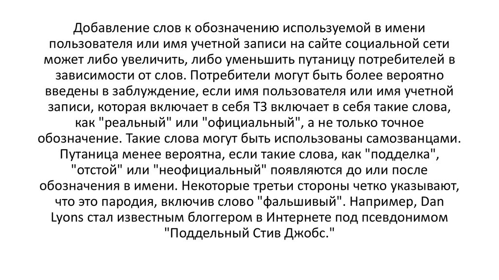 обозначение. Такие слова могут быть использованы самозванцами.