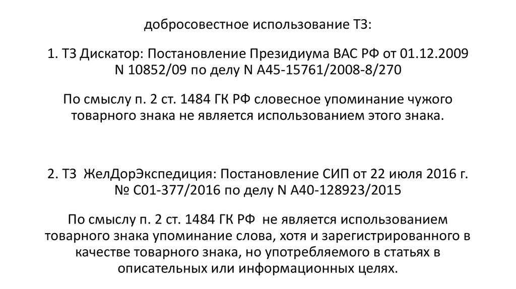 добросовестное использование ТЗ:1. ТЗ Дискатор: Постановление Президиума ВАС РФ от 01.12.2009