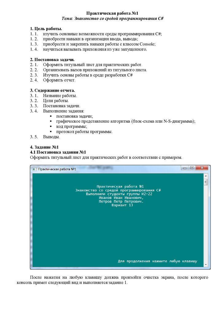 Практическая работа №1Тема: Знакомство со средой программирования C#