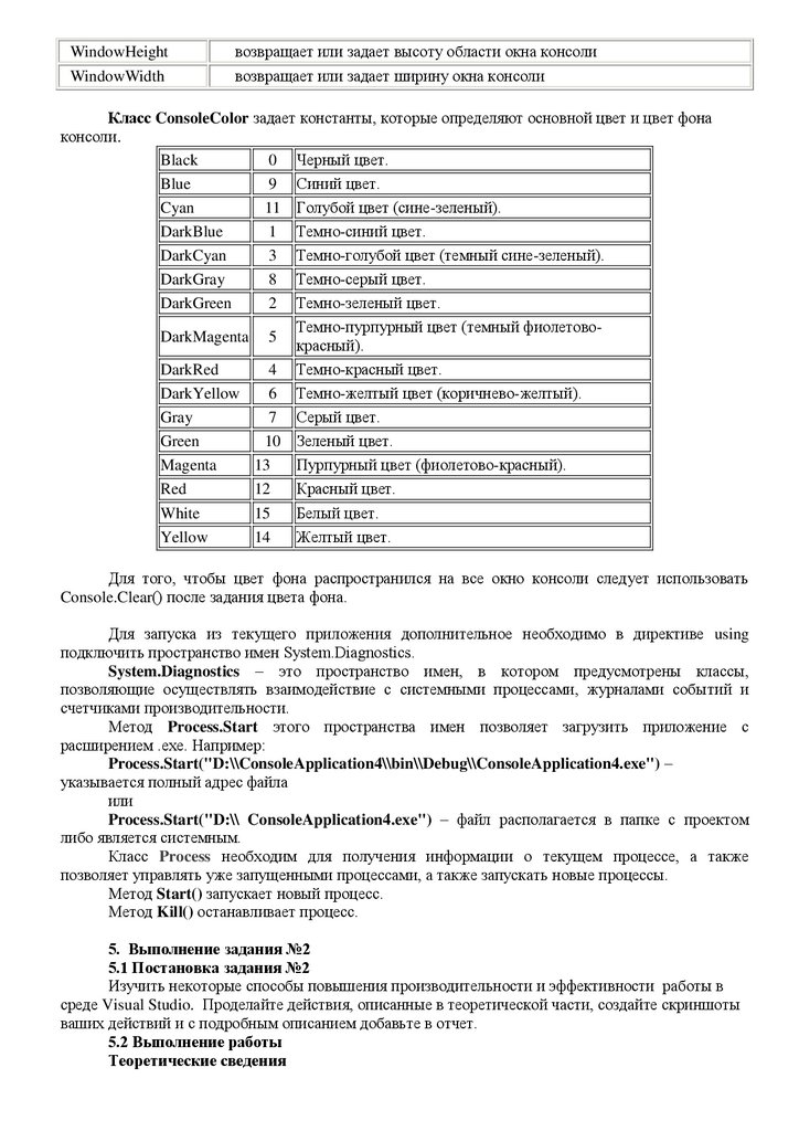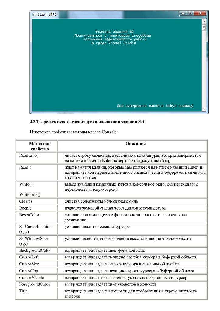 4.2 Теоретические сведения для выполнения задания №1Некоторые свойства и методы класса Console: