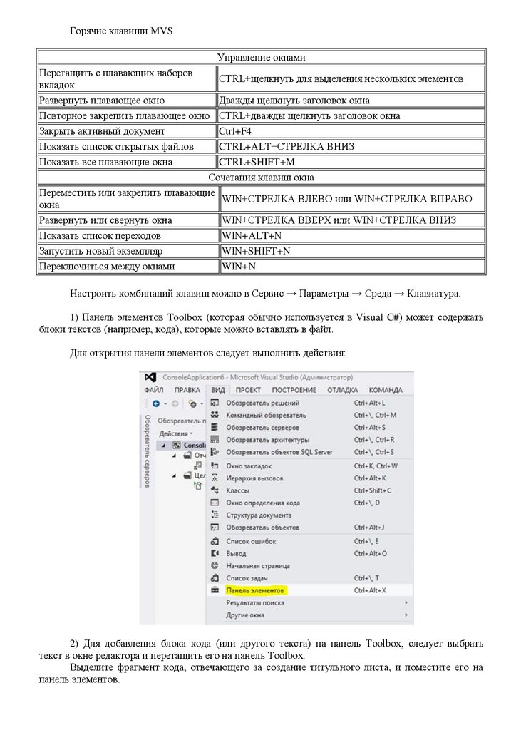 1) Панель элементов Toolbox (которая обычно используется в Visual C#) может содержать