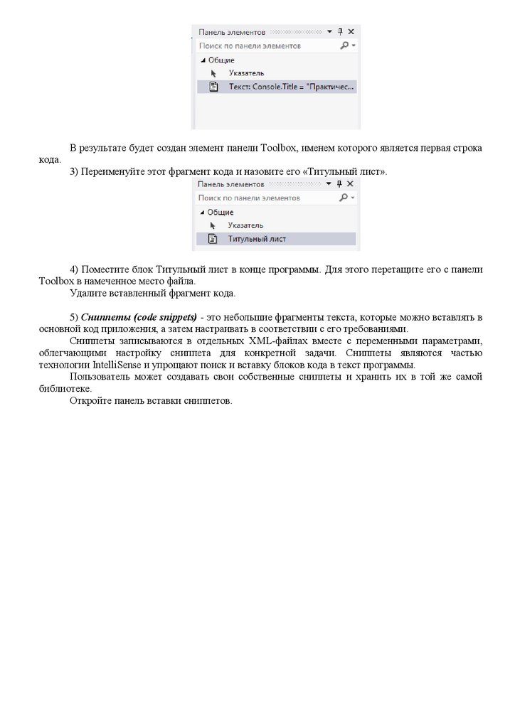 2) Для добавления блока кода (или другого текста) на панель Toolbox, следует выбрать