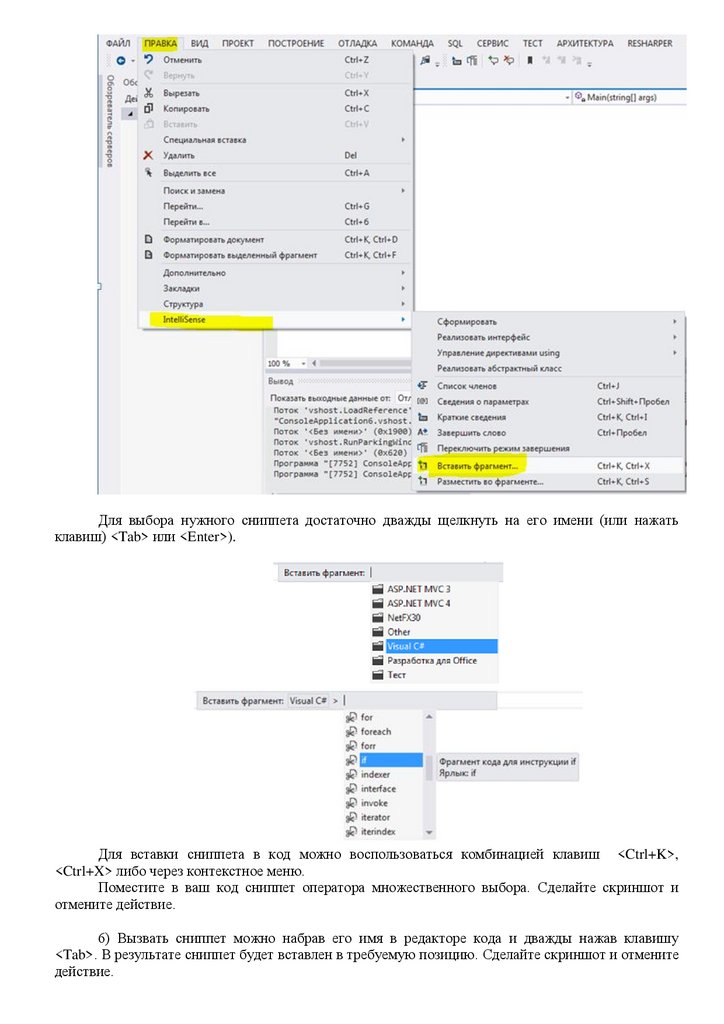 технологии IntelliSense и упрощают поиск и вставку блоков кода в текст программы.