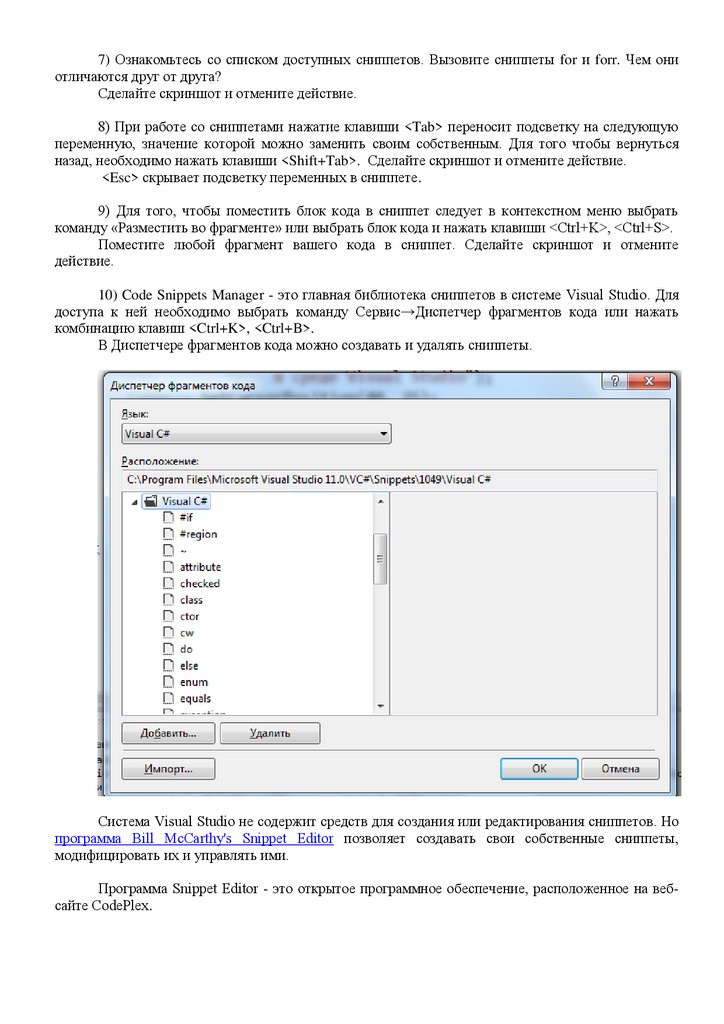 10) Code Snippets Manager - это главная библиотека сниппетов в системе Visual Studio. Для