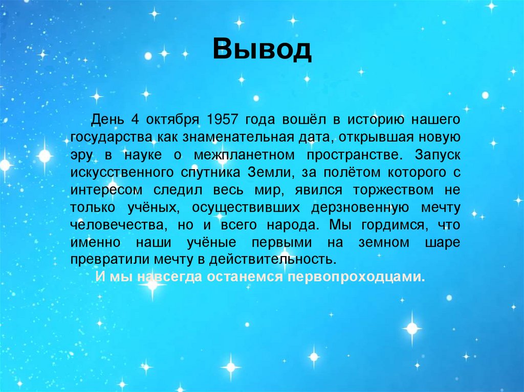 ВыводДень 4 октября 1957 года вошёл в историю нашего
