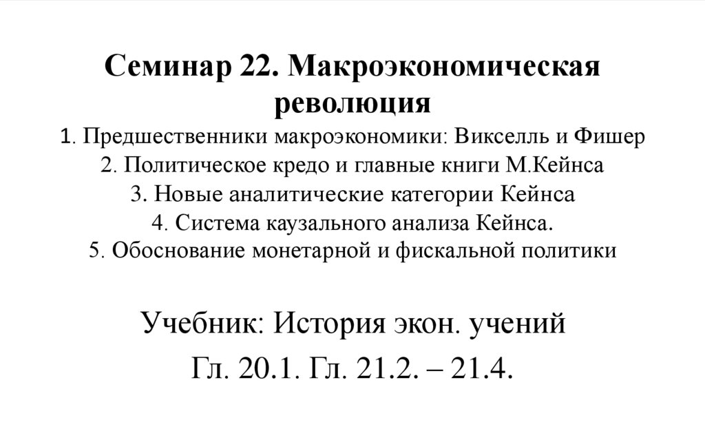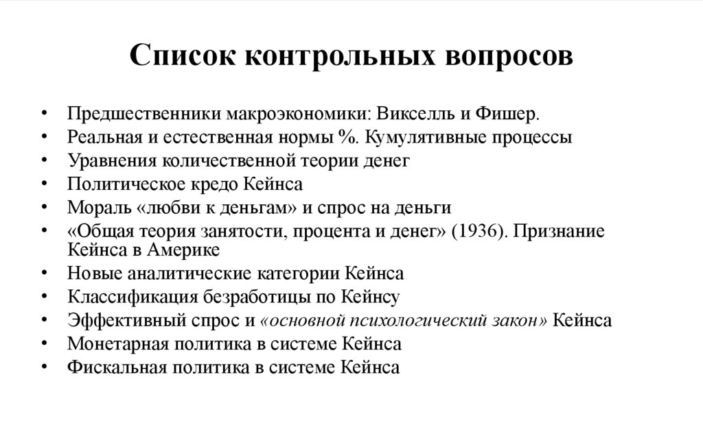Список контрольных вопросовПредшественники макроэкономики: Викселль и Фишер.