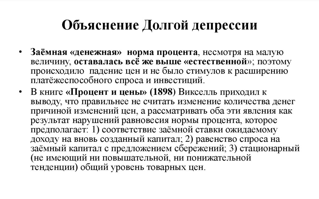 • В книге «Процент и цены» (1898) Викселль приходил к
