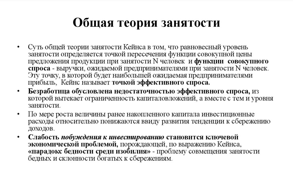 из состояния неполной занятости. Поэтому приоритеты Кейнс отдавал не монетарной