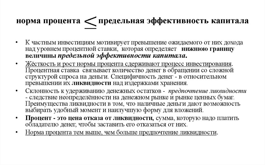 Процент - это цена отказа от ликвидности, сумма, которую надо платить