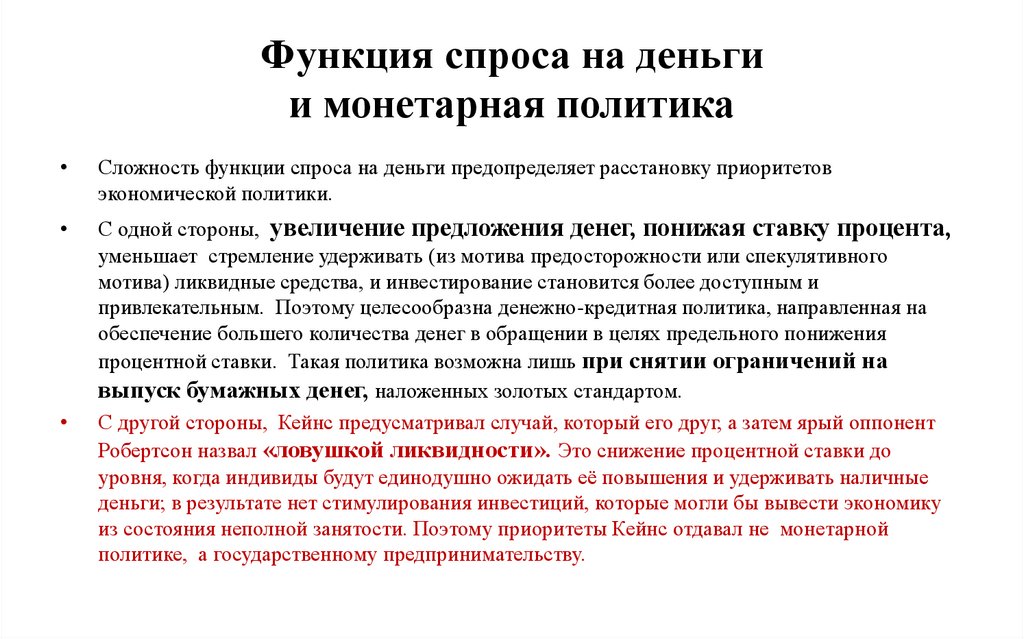 Сложность функции спроса на деньги предопределяет расстановку приоритетов