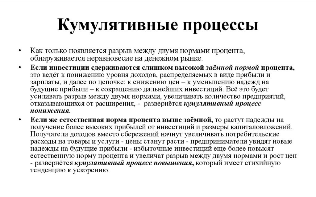 Кумулятивные процессыКак только появляется разрыв между двумя нормами процента,