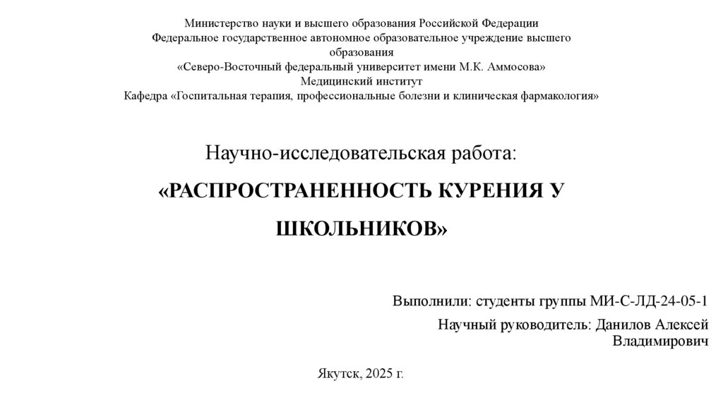 «Северо-Восточный федеральный университет имени М.К. Аммосова»