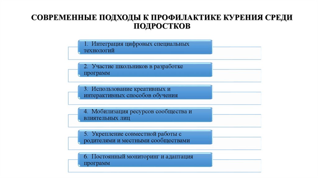 5. Определив современные подходы к профилактике курения среди подростков, мы пришли к выводу, что подходы к