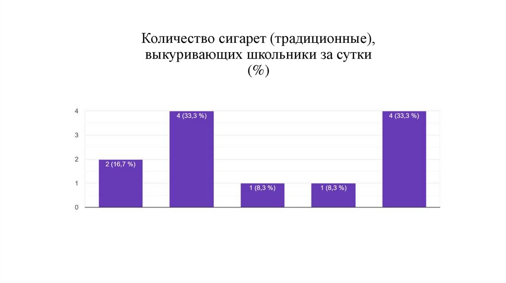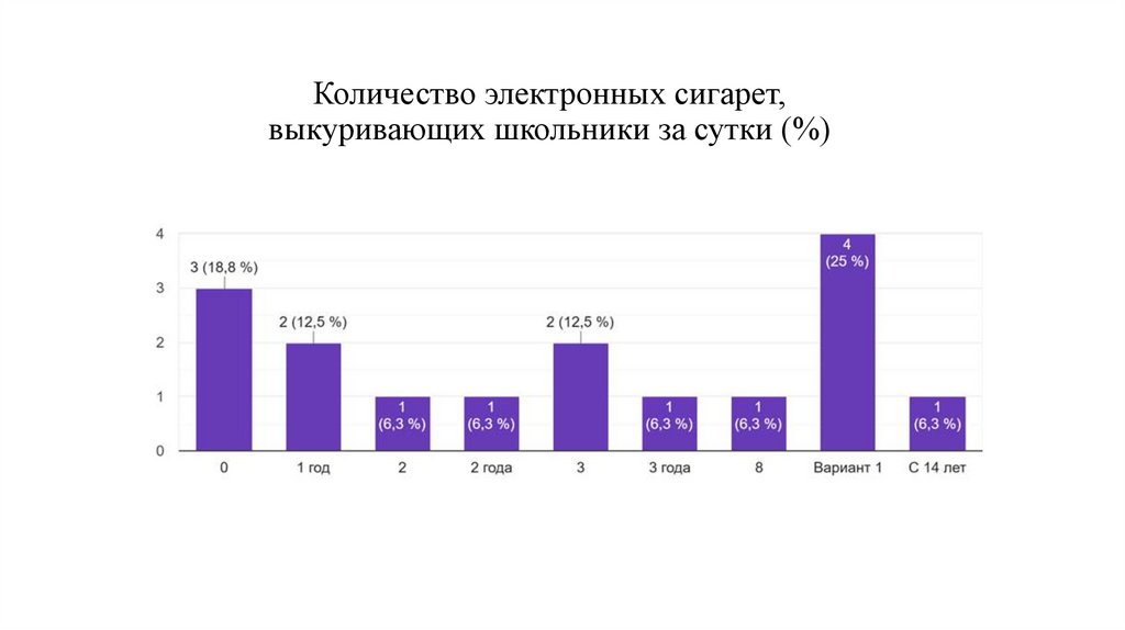 Количество электронных сигарет,выкуривающих школьники за сутки (%)