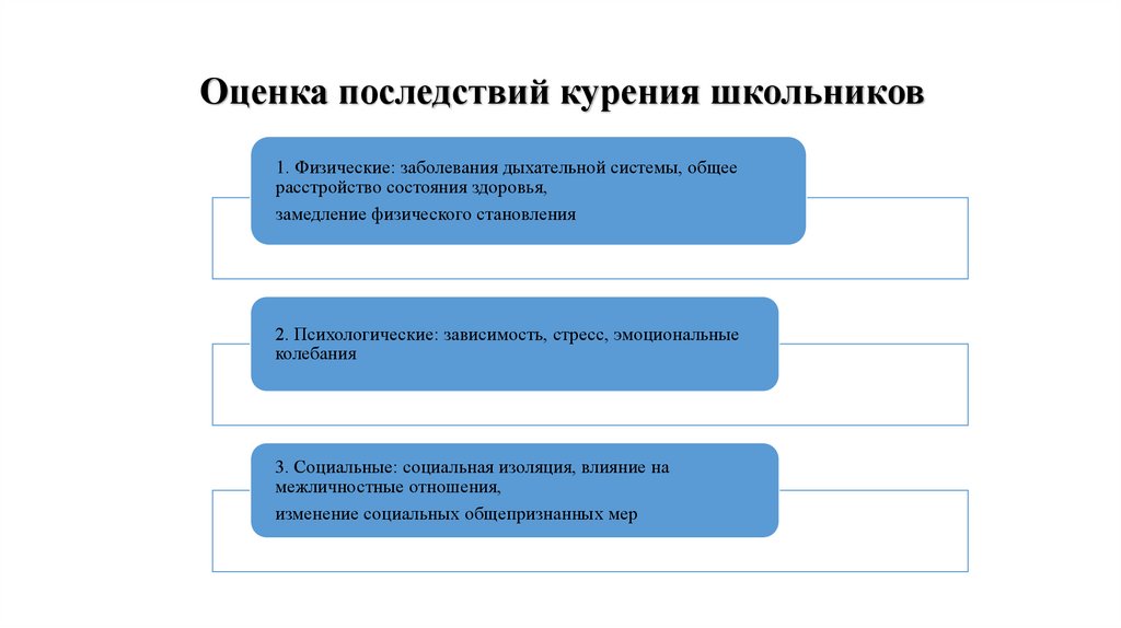 Оценка последствий курения школьников1. Физические: заболевания дыхательной системы, общее