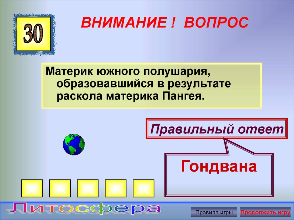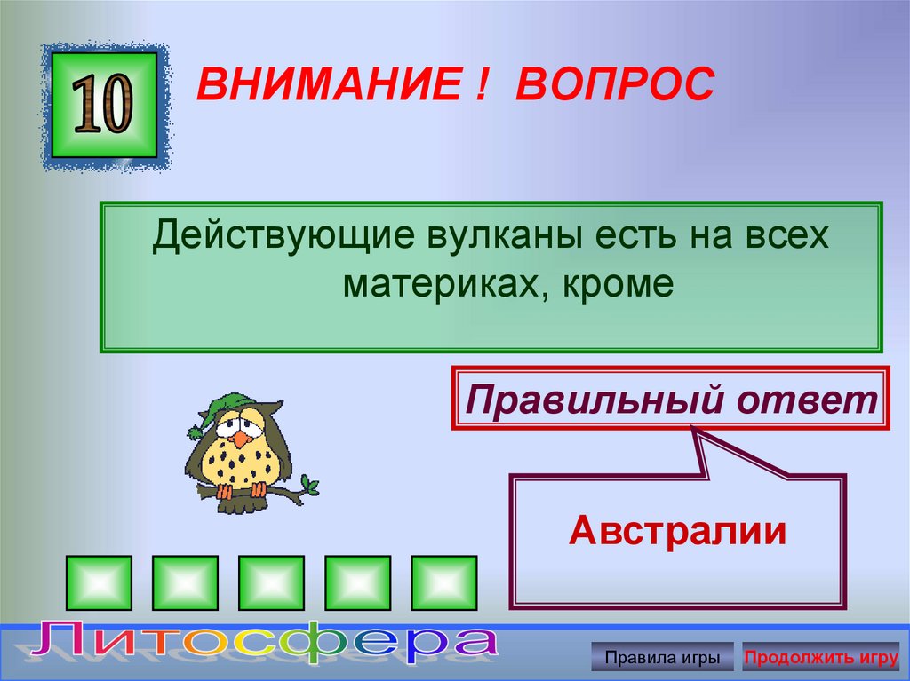 ВНИМАНИЕ ! ВОПРОСМатерик южного полушария,