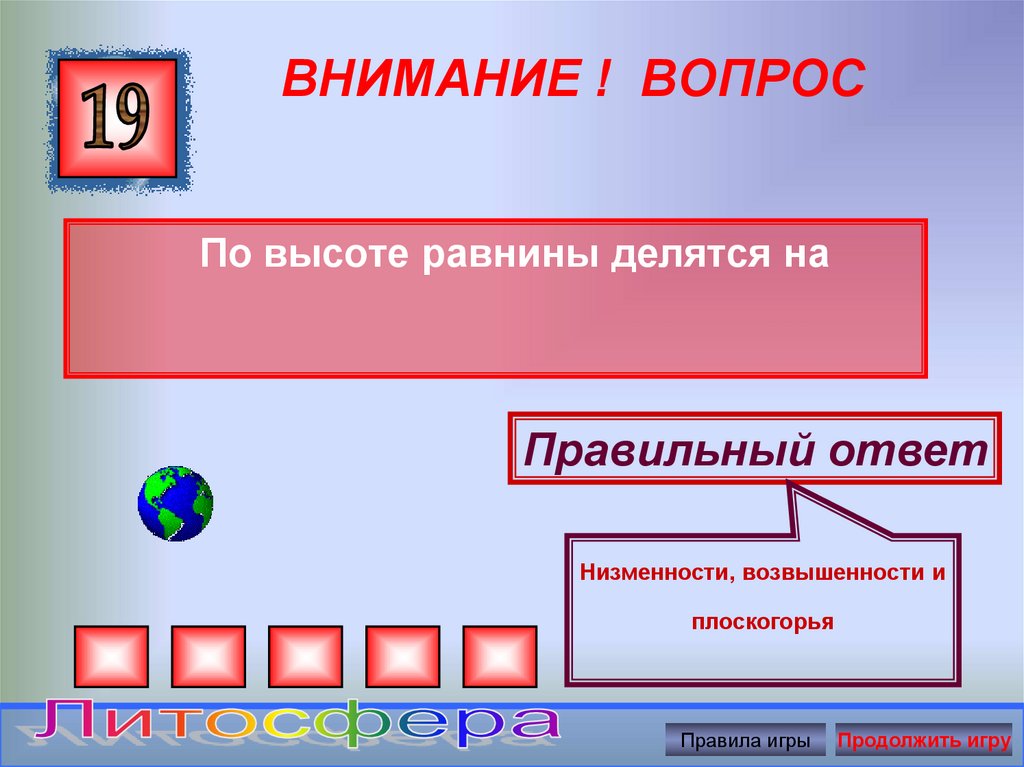 ВНИМАНИЕ ! ВОПРОСПо высоте равнины делятся на