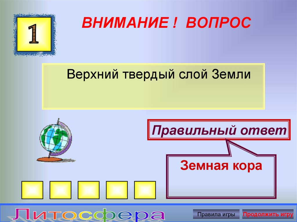 ВНИМАНИЕ ! ВОПРОСВерхний твердый слой Земли