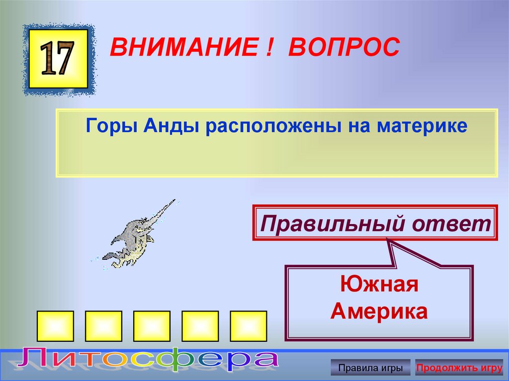 ВНИМАНИЕ ! ВОПРОСГоры Анды расположены на материке