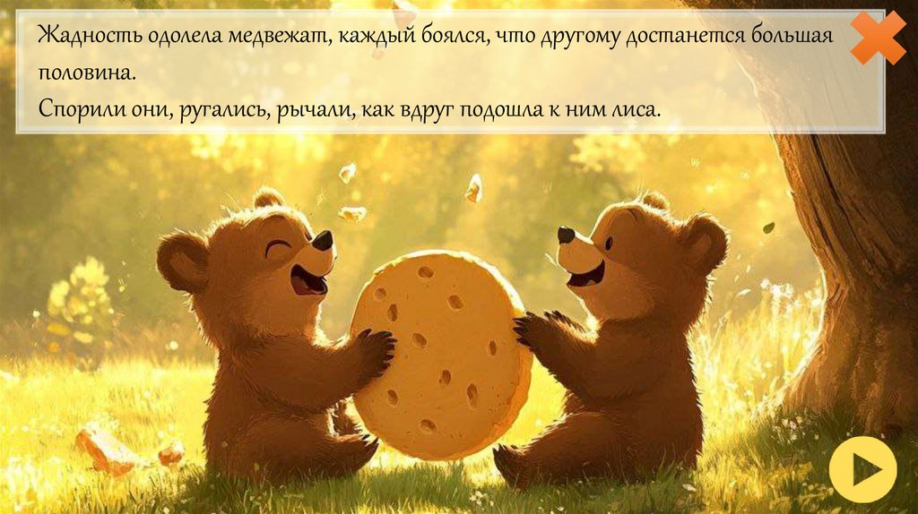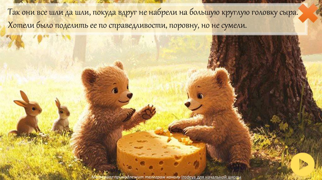 итоге останешься ни с чем. Когда медвежата стали спорить из-за сыра, их