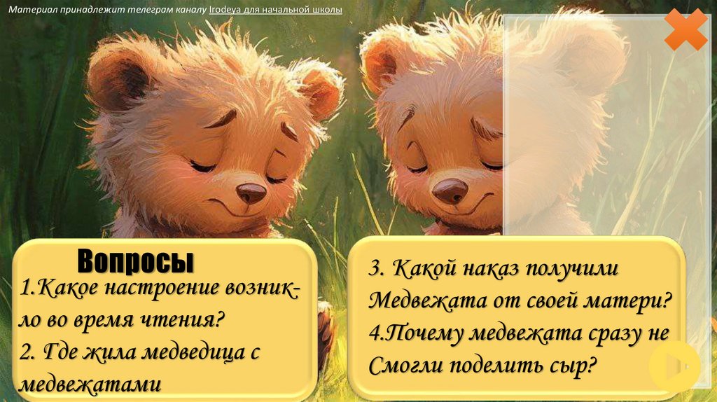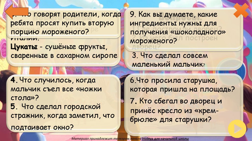 Материал принадлежит телеграм каналу Irodeya для начальной школыВопросы