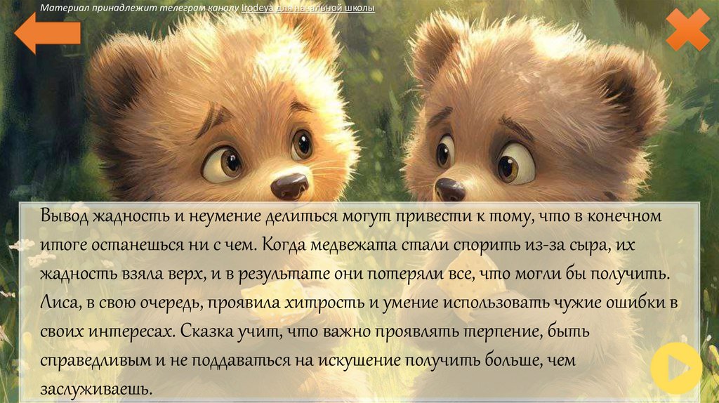 Материал принадлежит телеграм каналу Irodeya для начальной школыВывод жадность и неумение делиться могут привести к тому, что в конечном