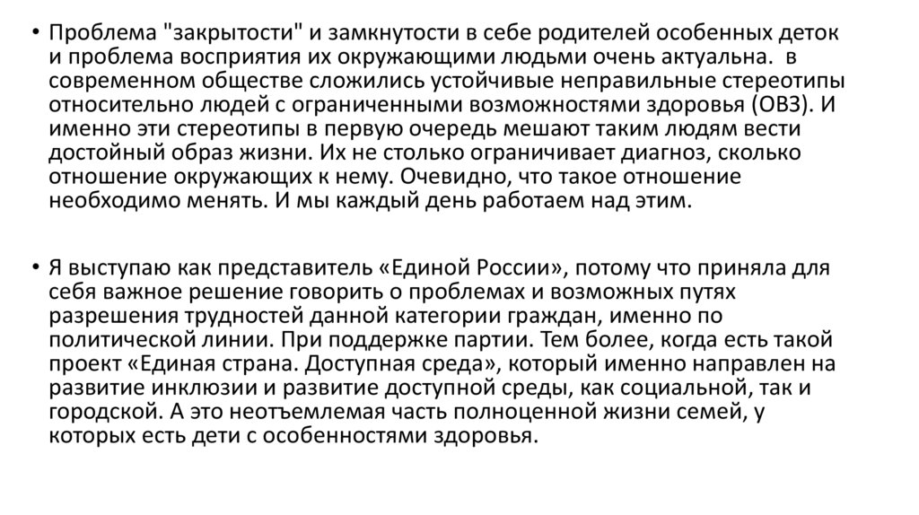• Проблема "закрытости" и замкнутости в себе родителей особенных детоки проблема восприятия их окружающими людьми очень актуальна. в