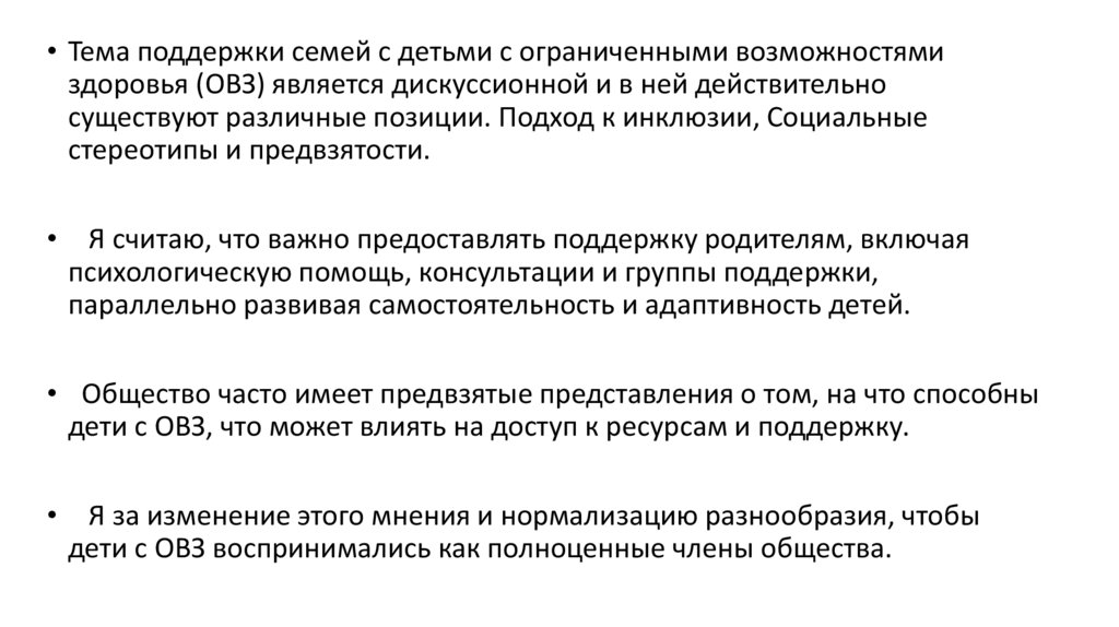 • Тема поддержки семей с детьми с ограниченными возможностямиздоровья (ОВЗ) является дискуссионной и в ней действительно